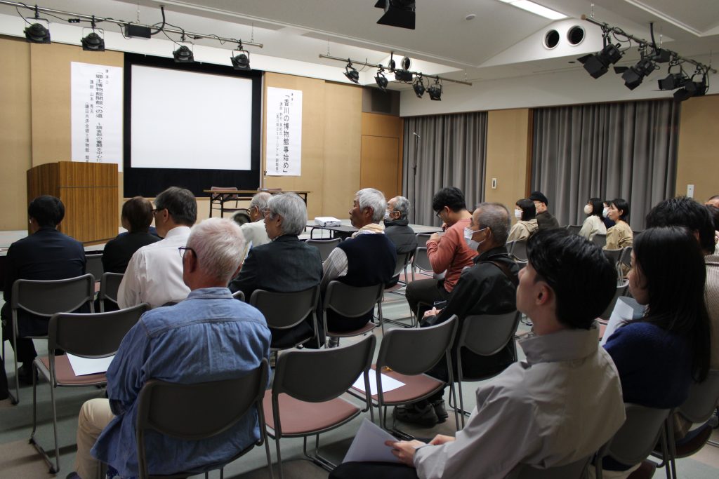 次に当館館長による「郷土博物館への道 ~調査部の奮闘を中心に~」です。調査部は共済会郷土博物館開館に先立ち、1922(大正11)年に設置されました。その活動は調査研究・史料収集・陳列(展示)と現在の博物館活動と遜色ない活発な動きをしており、郷土博物館開館にも生かされていたことを、当時の資料をもとに説明しました。最後には、調査部・郷土博物館主事として全ての事業を牽引した岡田唯吉の「専門家はもちろん一般人が何度も喜んで見て、知人をも連れ出して見に来るようなところにしたい」という言葉を紹介し、これは現在の私たちの目標でもあるとして締めくくりました。